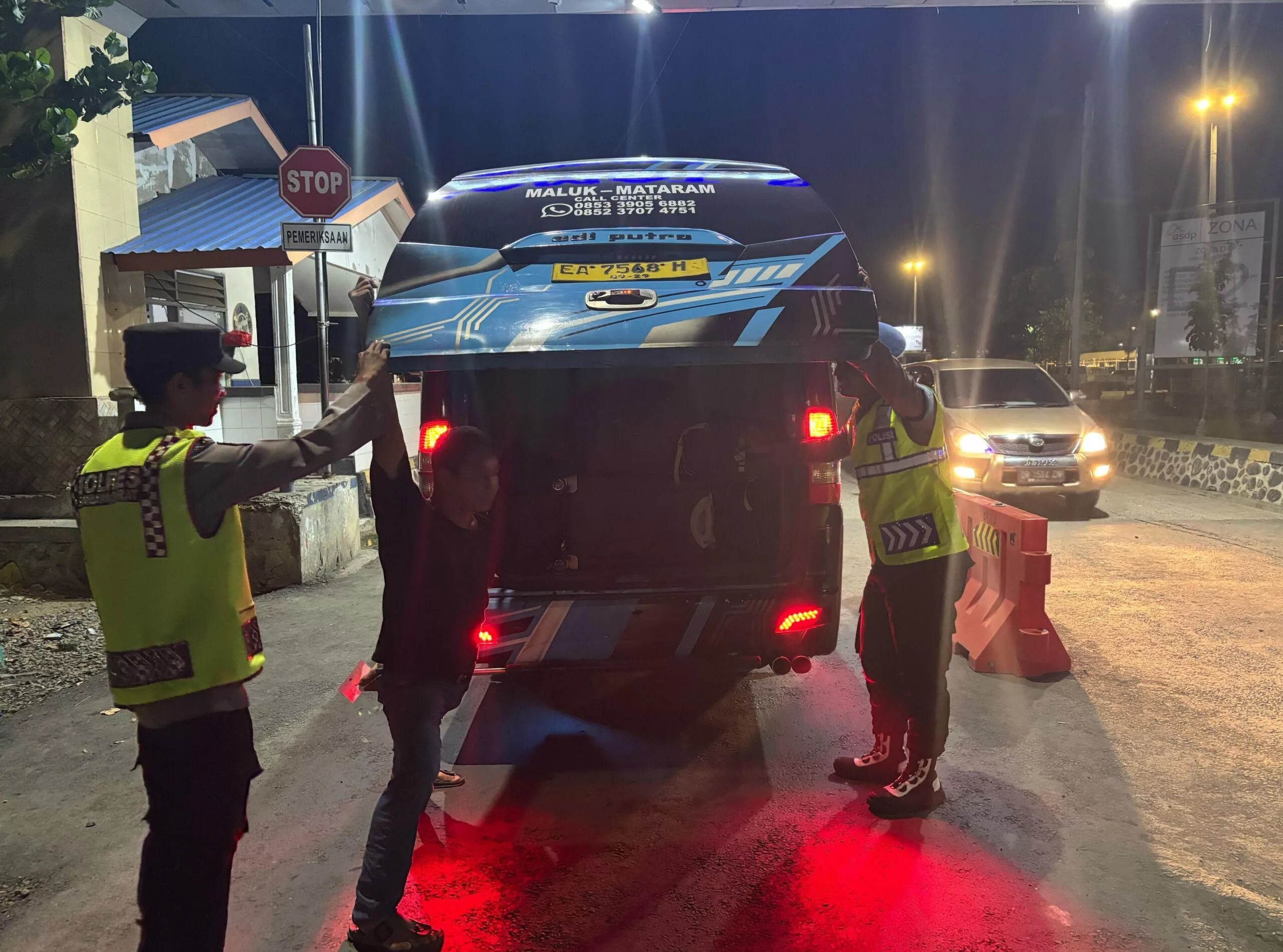 Selain itu, petugas juga memberikan imbauan kepada sopir angkutan umum (khususnya bus dan kendaraan lain yang tidak sesuai peruntukannya) agar mengutamakan keselamatan dan keamanan penumpang selama dalam perjalanan lintas pulau.