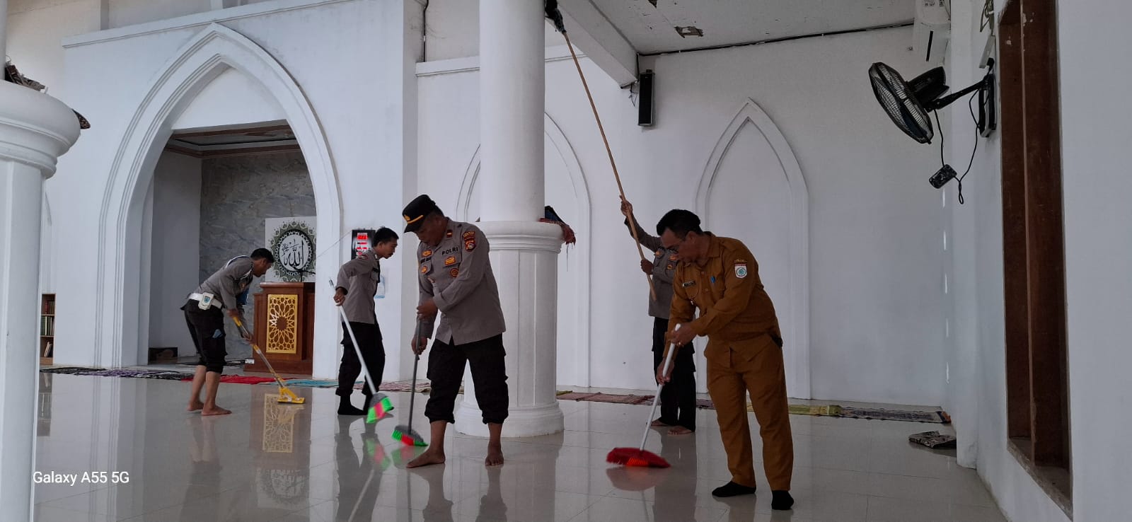 Kapolsek Poto Tano, Ipda Abdul Gafir, memimpin kegiatan Bakti Religi bergotong royong membersihkan Masjid Al-Khaerat yang berada di Desa Poto Tano Kecamatan Poto Tano Kabupaten Sumbawa Barat, pada hari Selasa (11/03/2025) pukul 09.00 WITA.