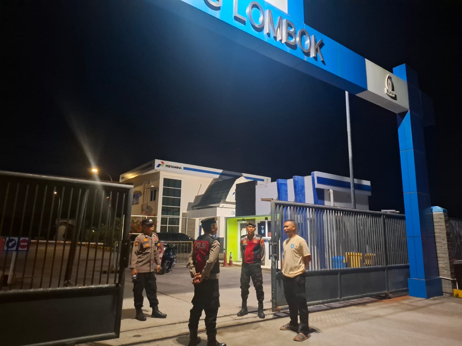 Personel Polsek Sekotong melaksanakan patroli menyasar kantor depot LPG Lombok yang berlokasi di Desa Sekotong Barat, Kamis malam (8/5/2025).