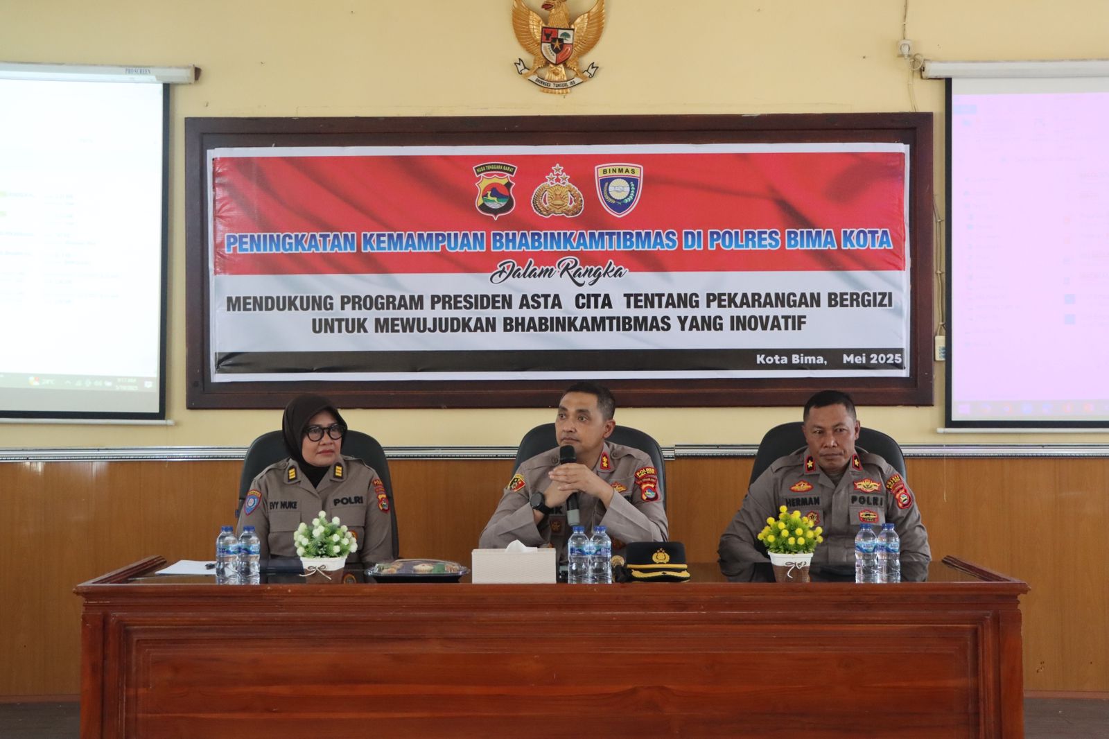 Kota Bima, NTB (19/5/2025) – Satuan Pembinaan Masyarakat (Sat Binmas) Polres Bima Kota menggelar kegiatan Peningkatan Kemampuan Bhabinkamtibmas dengan tema “Mendukung Program Presiden Asta Cita tentang Pekarangan Bergizi untuk Mewujudkan Bhabinkamtibmas yang Inovatif”, bertempat di Aula Rupatama Polres Bima Kota.