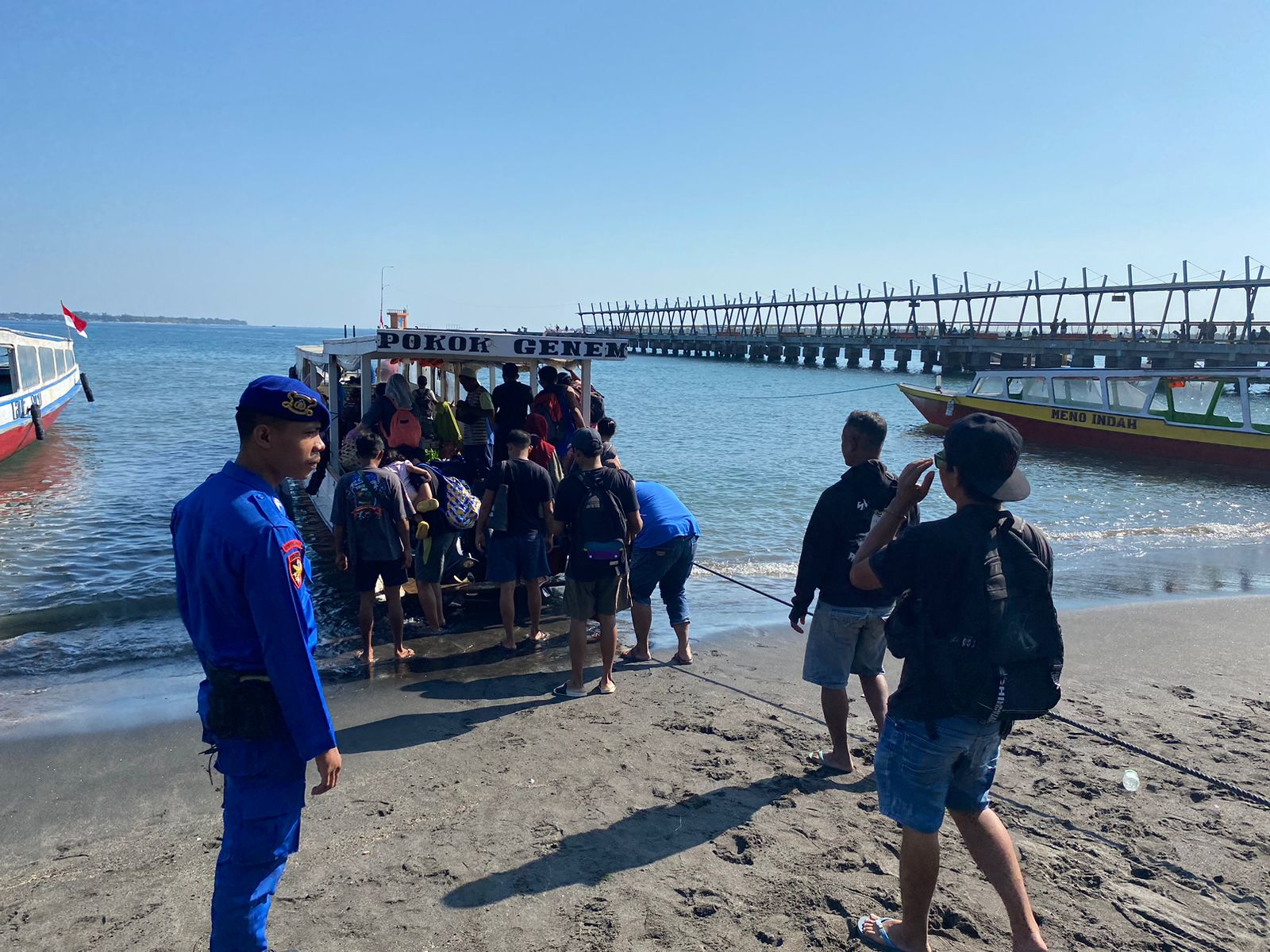 Lombok Utara, NTB – Guna memastikan para pengunjung atau wisatawan aman saat melakukan penyebrangan ke tiga gili pasca perayaan tahun baru, Sat Polairud Polres Lombok Utara melaksanakan patroli dan memberikan himbauan kepada para pengunjung yang akan menggunakan jasa angkutan laut di pelabuhan Bangsal ke tiga Gili bertempat di Bangsal Kecamatan Pemenang KLU. Kamis, 2/1/2025.