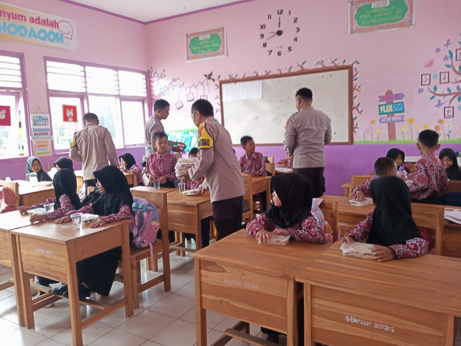 Pelaksanaan pemberian makanan bergizi kepada para murid ini disalurkan oleh Polsek jajaran bersama anggota sehingga dapat terlaksana secara efektif dan efisien serta menambah kedekatan Polri dengan masyarakat.