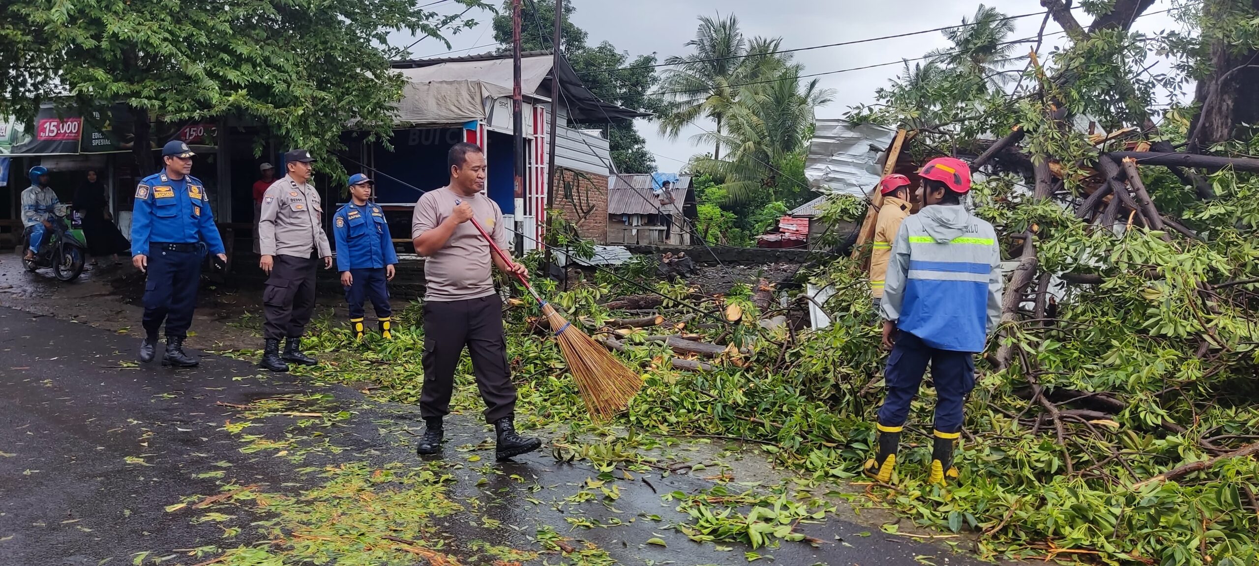 Lombok Utara – Respon Cepat Polsek Kayangan melakukan Evakuasi korban dan sebuah dahan pohon berukuran besar tumbang dan menimpa sebuah bangunan dan pengendara sepeda motor pada Minggu, 9/2/ 2025, pukul 07.00 Wita