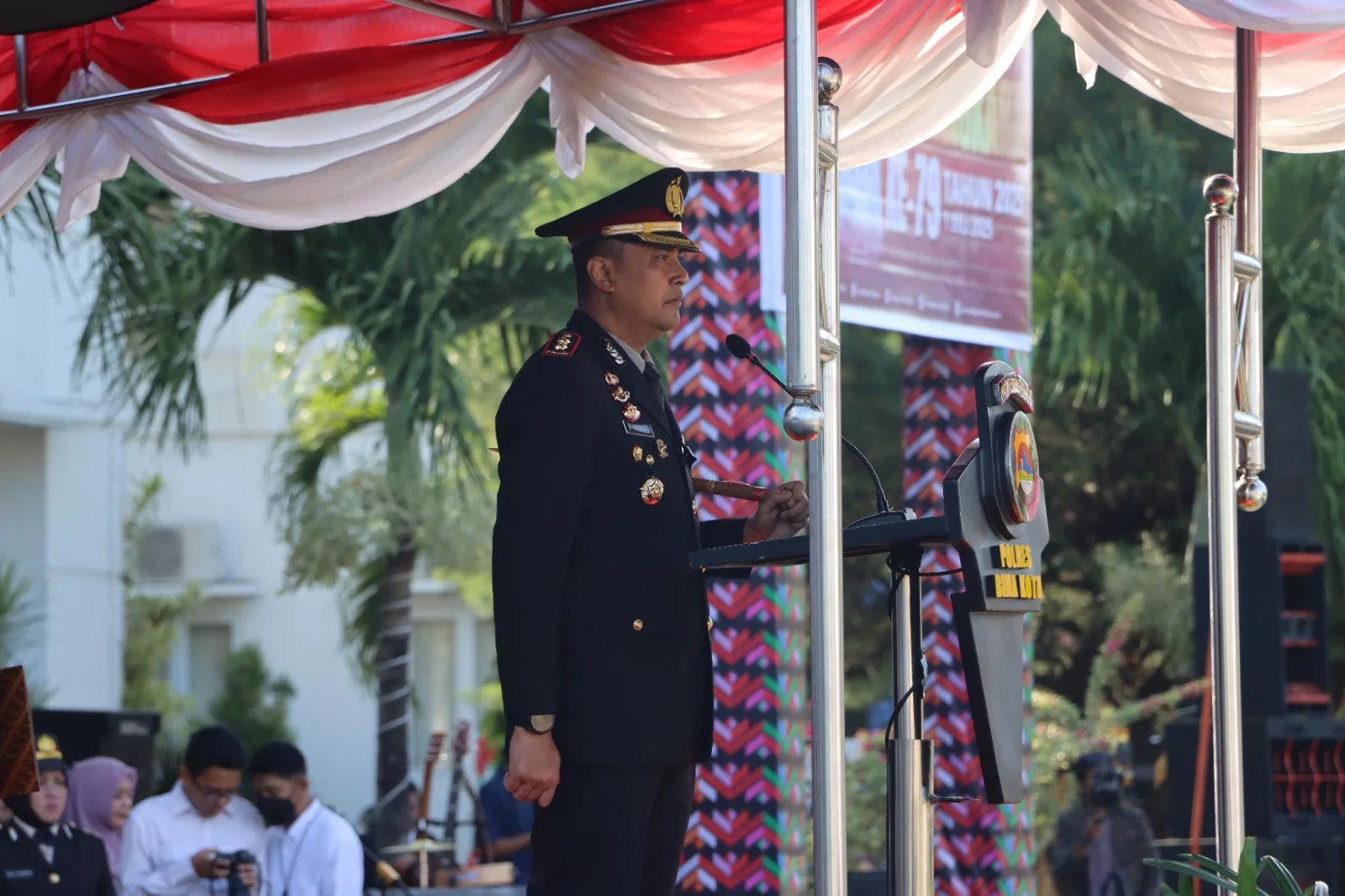 Kapolres Bima Kota, AKBP Didik Putra Kuncoro, S.I.K., M.Si., yang bertindak sebagai Inspektur Upacara, dalam amanatnya membacakan sambutan Kapolda NTB. Ia menegaskan bahwa peringatan HUT Bhayangkara ke-79 menjadi momentum penting memperkuat sinergi antara Polri dan seluruh elemen bangsa dalam mewujudkan Asta Cita, khususnya peran Polri dalam menjaga stabilitas keamanan demi mendukung Indonesia sebagai lumbung pangan nasional.