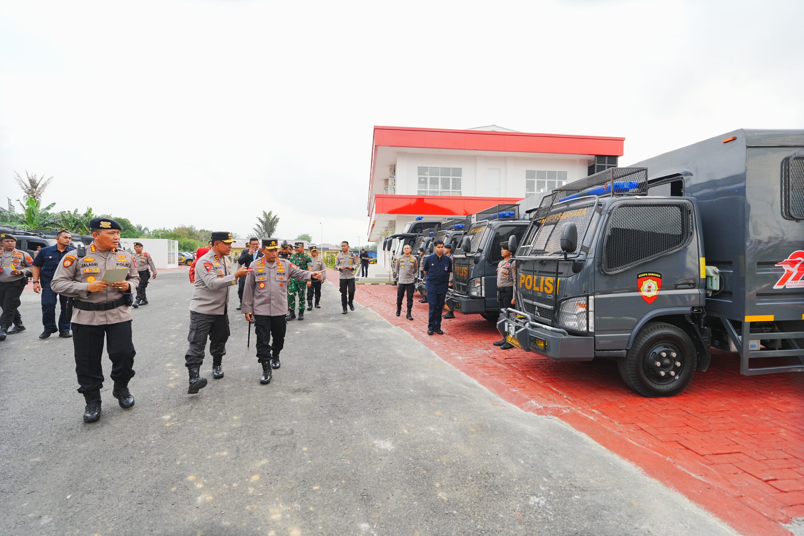 Kapolri Jenderal Listyo Sigit meninjau Gedung Polda Sumut usai melakukan groundbreaking atau peletakan batu pertama dapur program Makan Bergizi Gratis. Kapolri meninjau Gedung Dit Samapta hingga GOR Badminton.