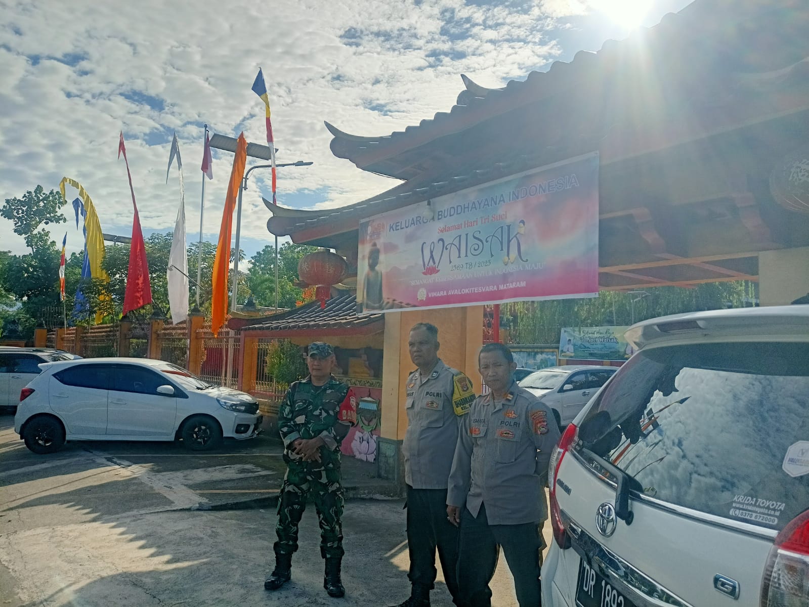 “Kami menjamin umat Buddha dapat merayakan Waisak dengan tenang. TNI-Polri hadir untuk menjaga situasi tetap kondusif dan memberikan rasa aman kepada masyarakat,” ujar Danramil 1606-01/Cakranegara, Kapten Inf Iwan Suryawinarto.
